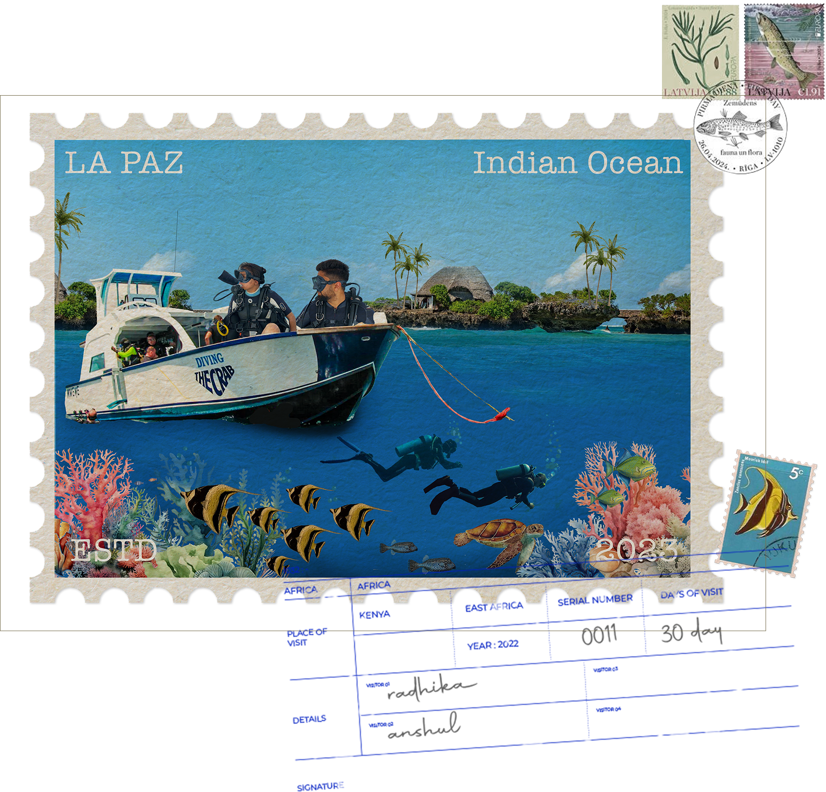 The collection captures this dreamlike memory—the feeling of being one with the ocean, it is a tribute to the Indian Ocean, inspired by the surreal scuba diving experience in Diani Beach, Kenya. Vivid hand-illustrated print captures the kaleidoscope of underwater life—radiant fish, coral gardens, flowing through versatile swimwear and resortwear, letting you dress in ocean nostalgia.