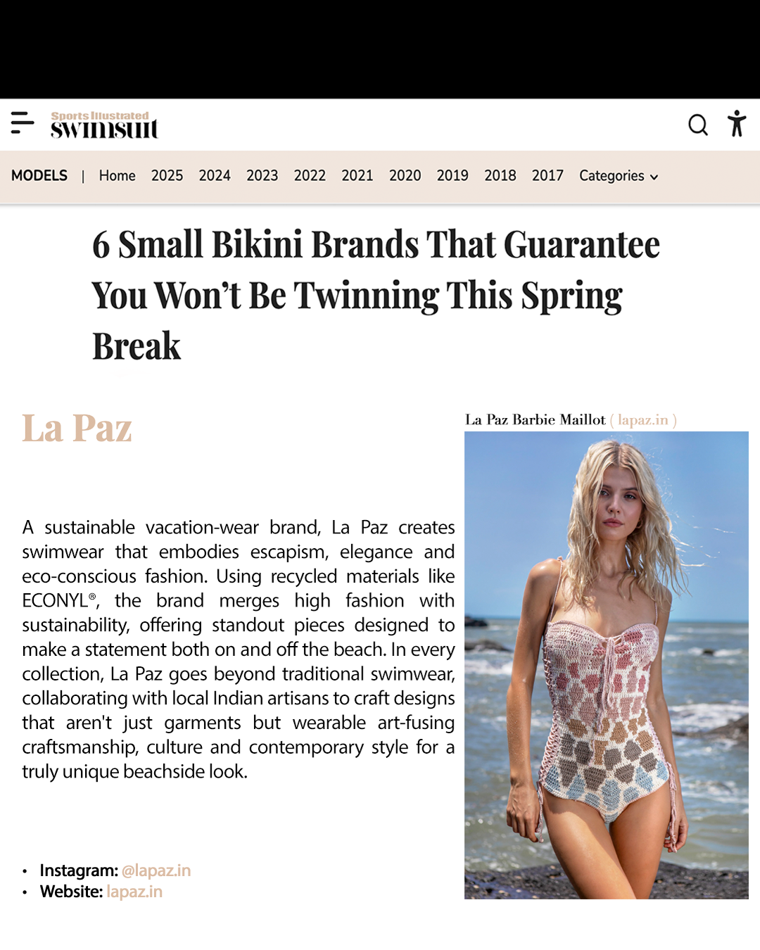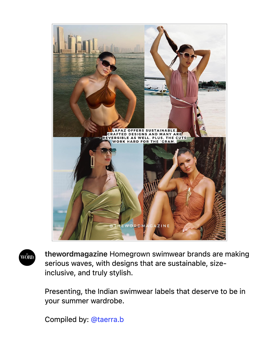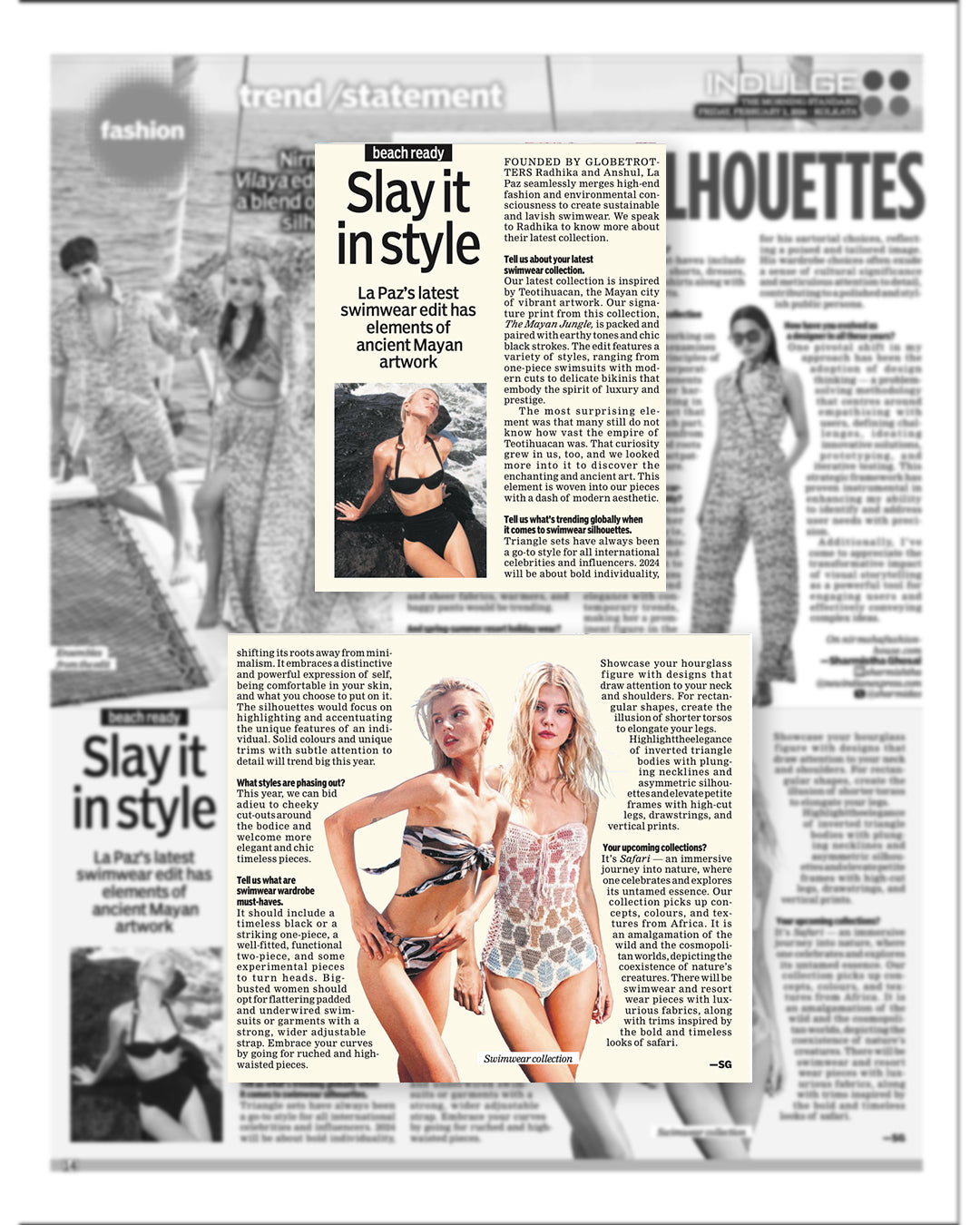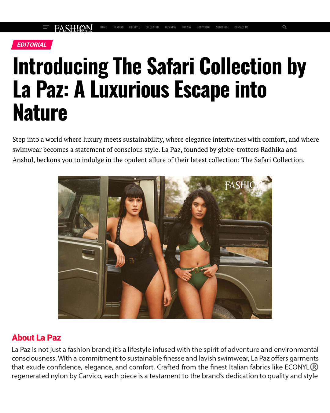 “Combining their passions for nature and fashion, Radhika Agarwal and Anshul Yadav birthed La Paz that is a conscious luxury swimwear.Their brand strives to deliver sustainable elegance and comfort, proving an escape from life’s monotony.