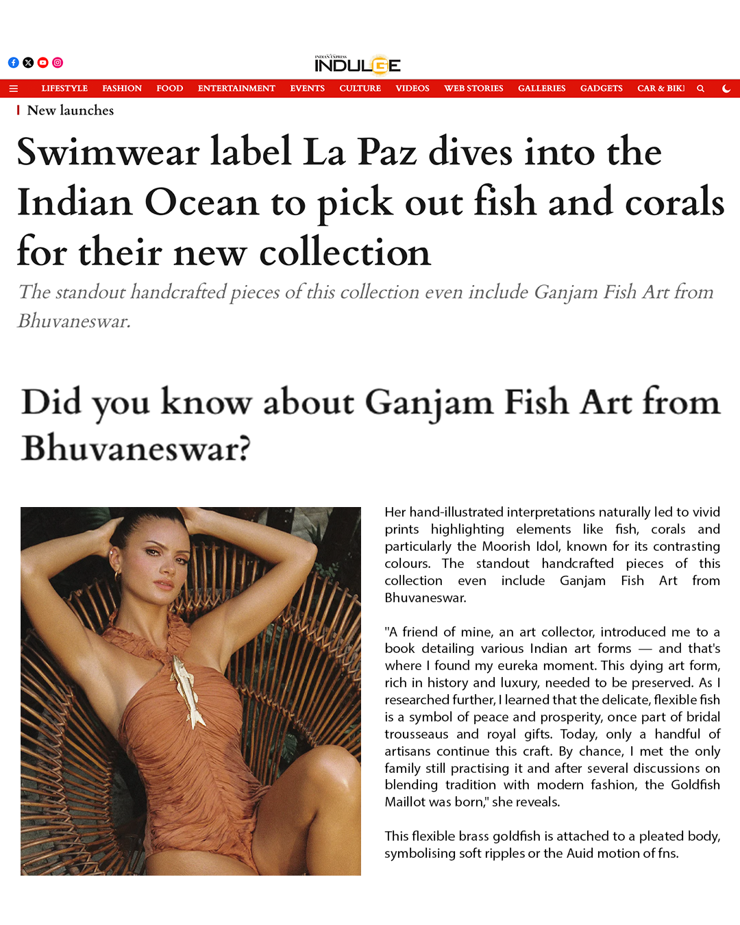 In every collection, La Paz goes beyond traditional swimwear, collaborating with local Indian artisans to craft designs that aren't just garments but wearable art fusing culture, craftsmanship, and contemporary style for a truly unique beachside look.